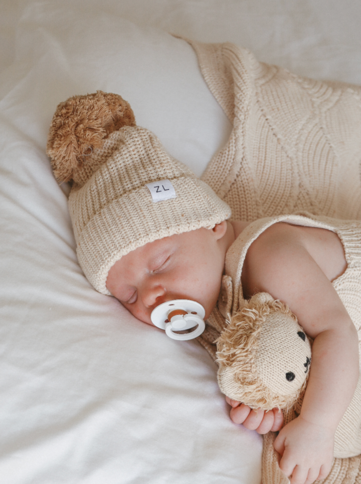 Safety | Never leave baby unattended with beanie on. Remove beanie before sleeping.