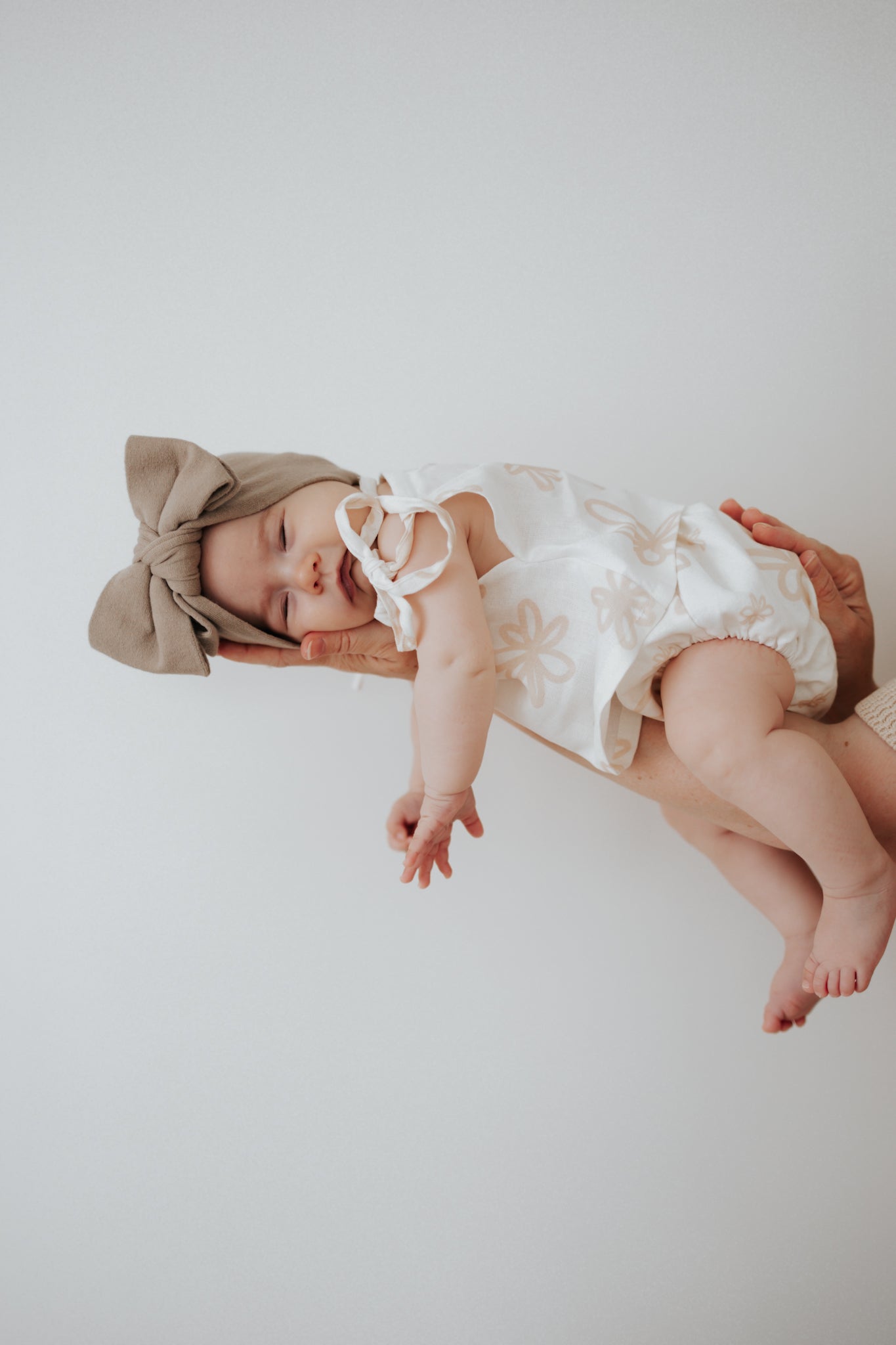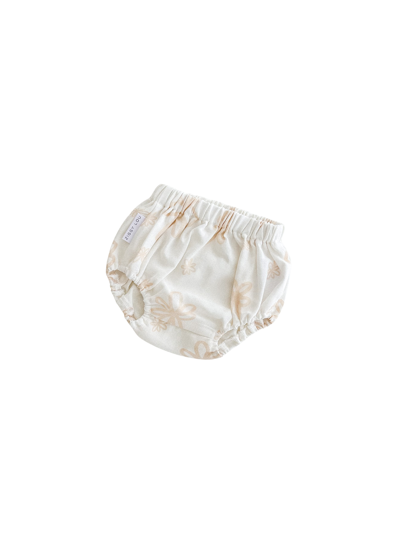 Linen blend bloomers with an elastic waist featuring our Gia print.