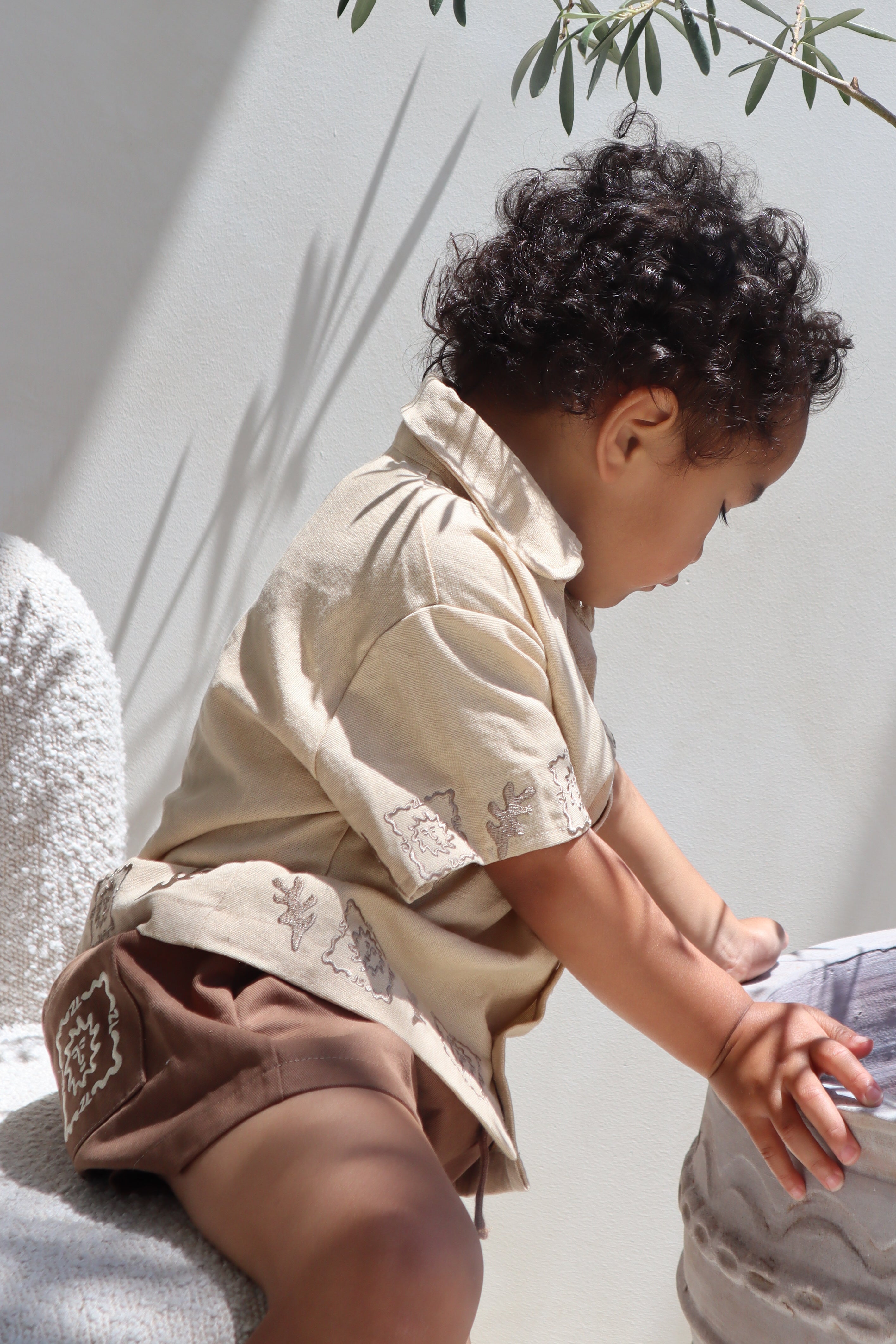 Cotton canvas shorts featuring 4 functional pockets and an embroidered Sorrento design on back pocket. Elastic waistband with functional drawstring. Mix and match with items from our Milo, Sorrento + Cappuccino Summer Collections.