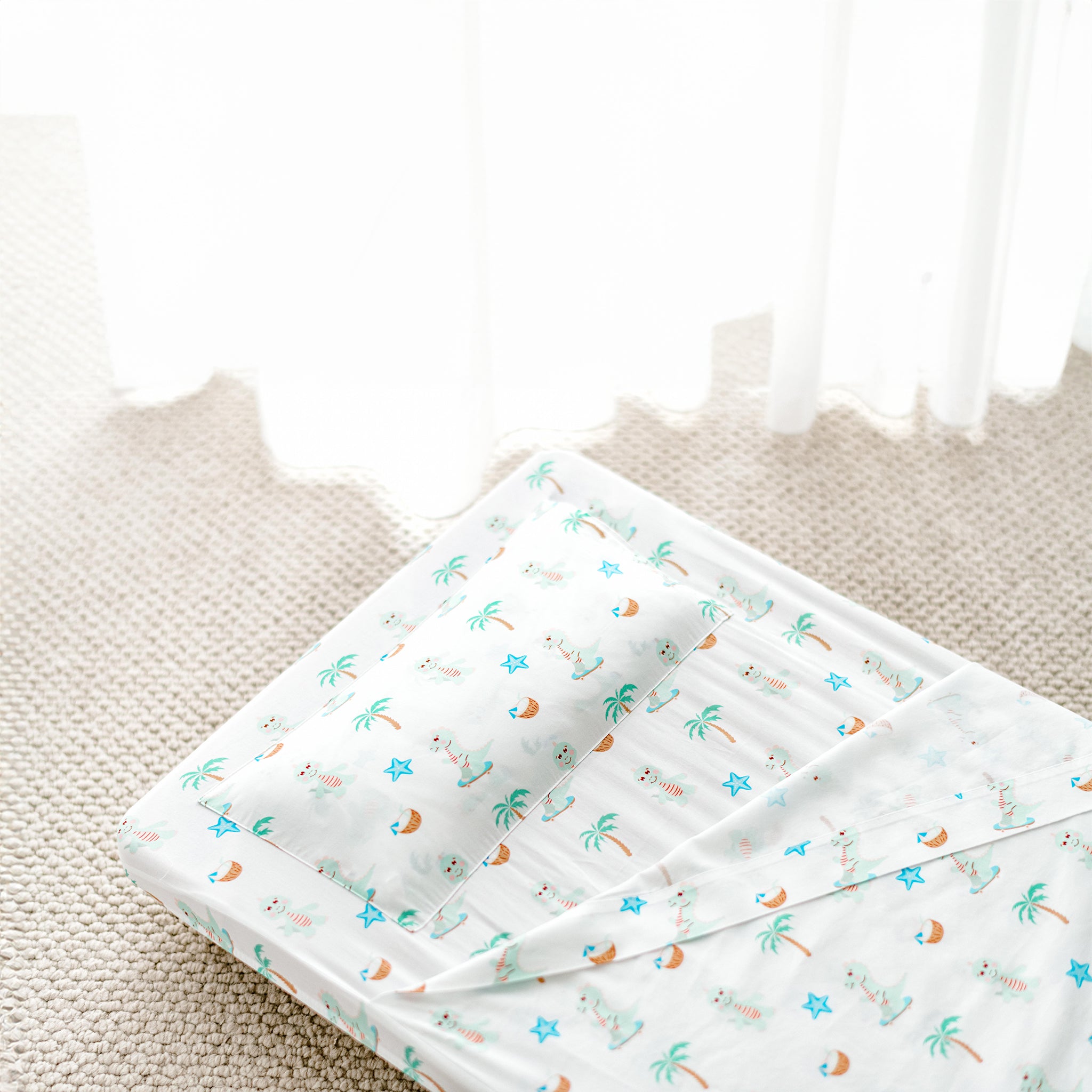- Your little one will go coconuts for our Summer Days sheets, featuring our skateboarding dino, palm trees and starfish.