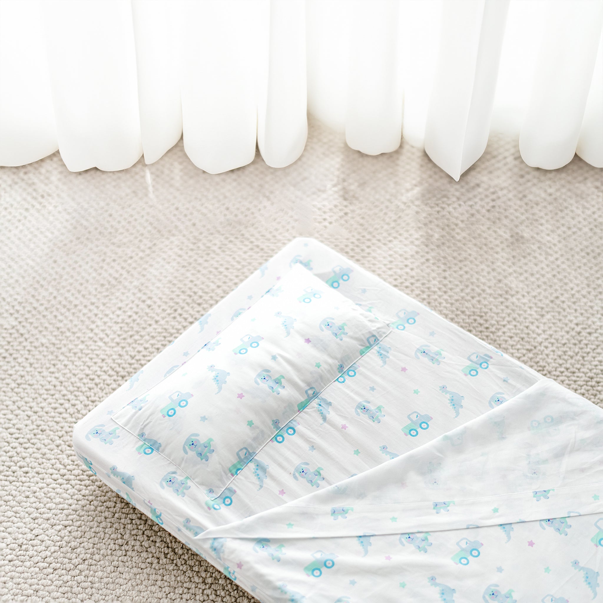 - Dino Dreams features a calming teal colour palette of trucks, dogs and cute dinosaurs so they drift off with ease.