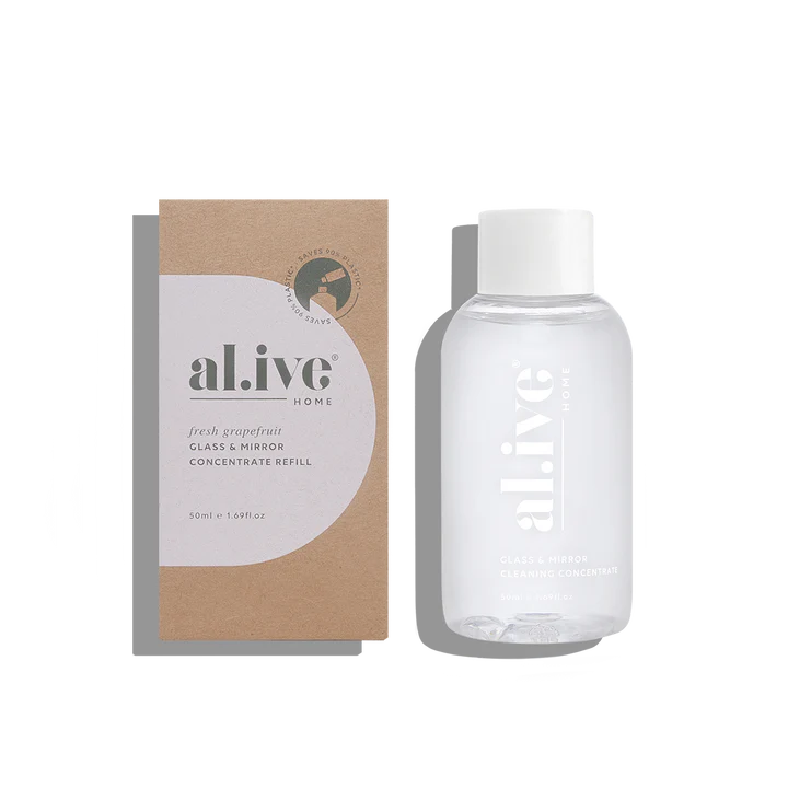 Simply pour the 50ml Cleaning Concentrate into your existing al.ive home cleaning Glass & Mirror Refillable Bottle. Then with regular tap water, fill to the 450ml line and give the bottle a good shake. You are now ready to go.