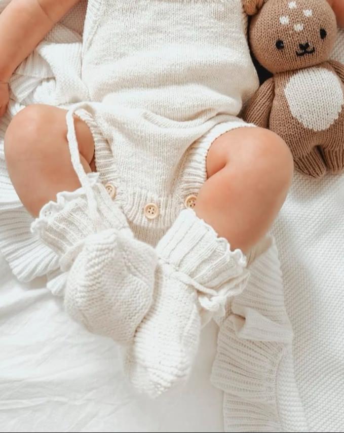 Description: Keep your little one’s feet warm and cozy with our Honey Knitted Booties. Made from soft, 100% textured cotton, these booties are designed for both comfort and style. The delicate knit and snug fit make them perfect for cooler days. Part of our Honey collection, these booties are an essential piece for creating a coordinated and adorable look.