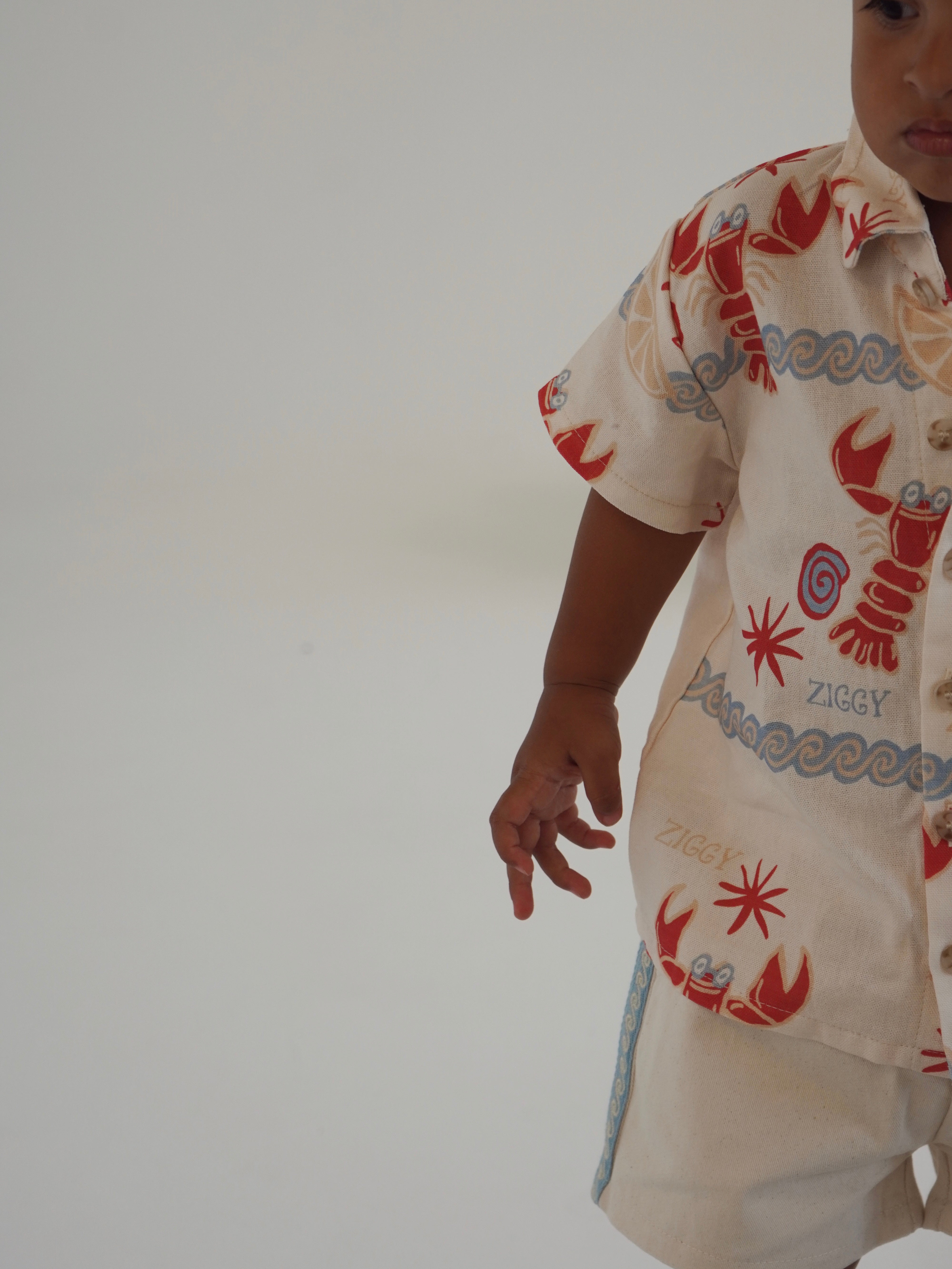 Linen blend shirt featuring our printed Costa design. Functional buttons down the front. Mix and match with our Costa + Lake Collections.