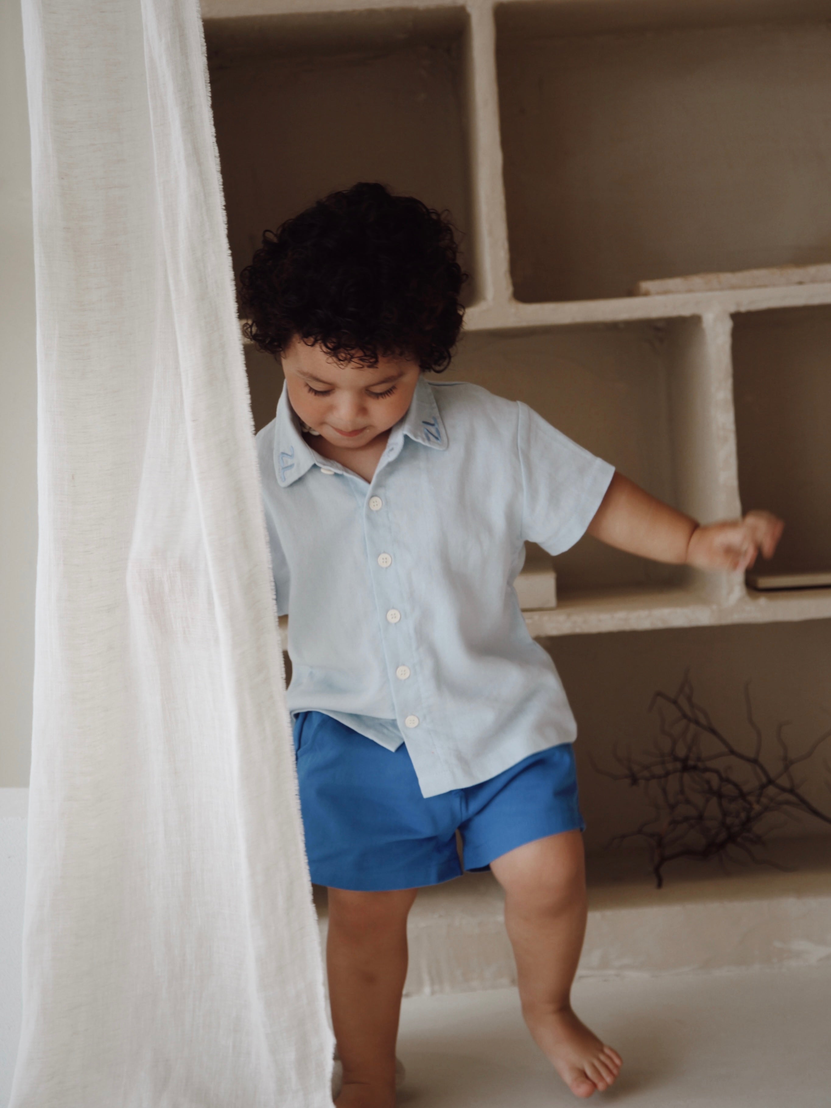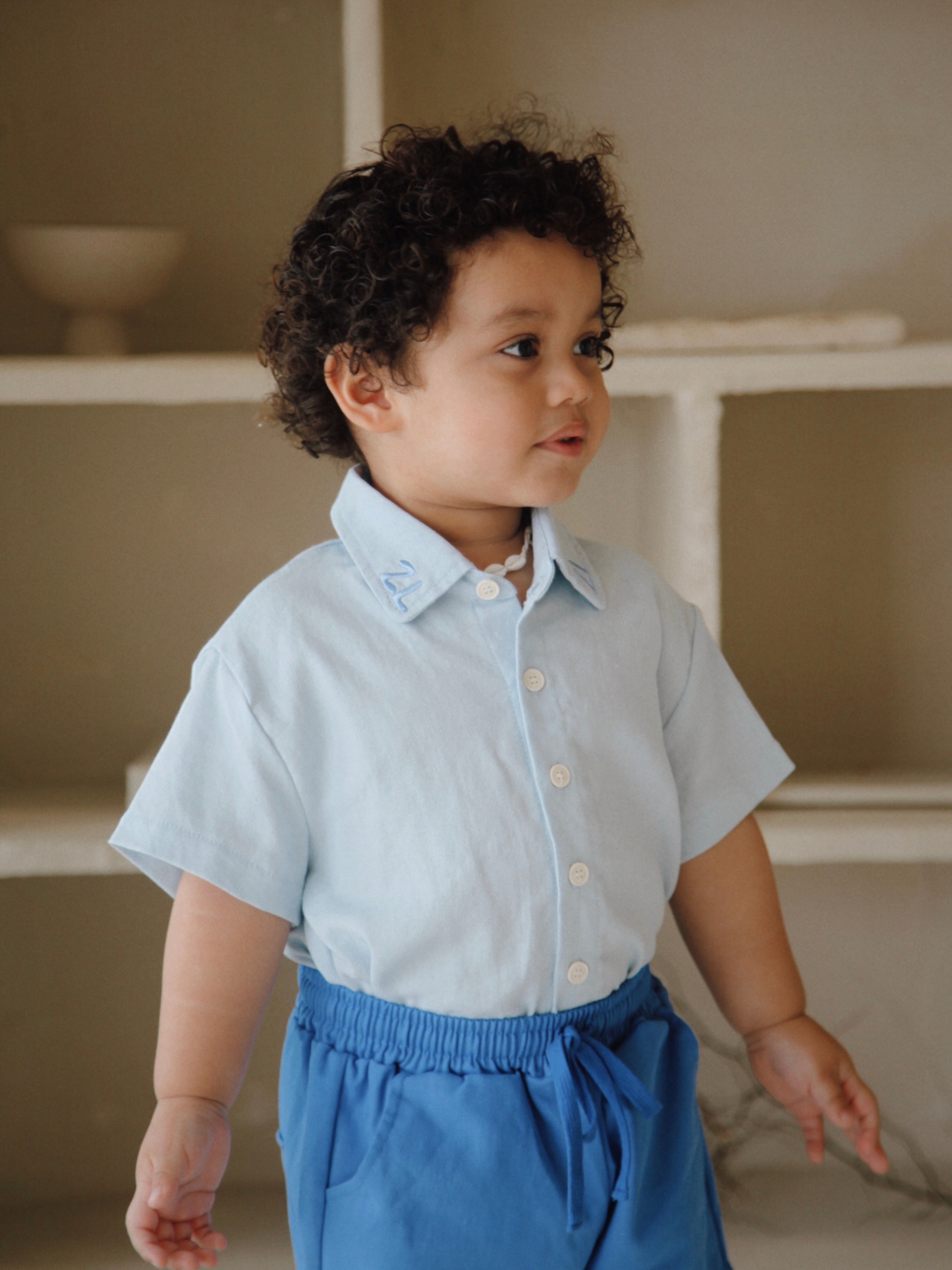 Linen blend shirt with our ZL embroidered design on either side of the collar. Functional buttons down the front. Mix and match with our Tide + Zen Summer Collections.