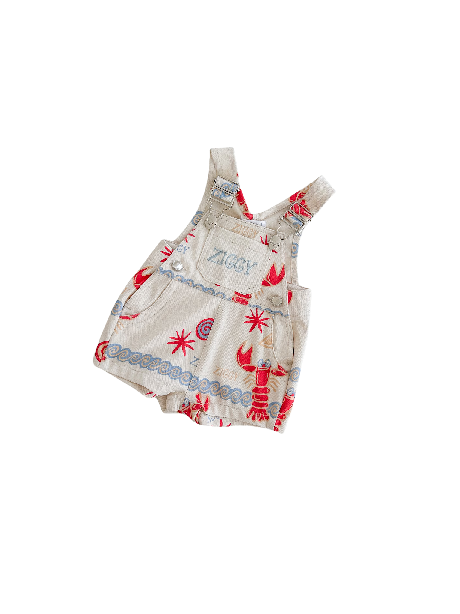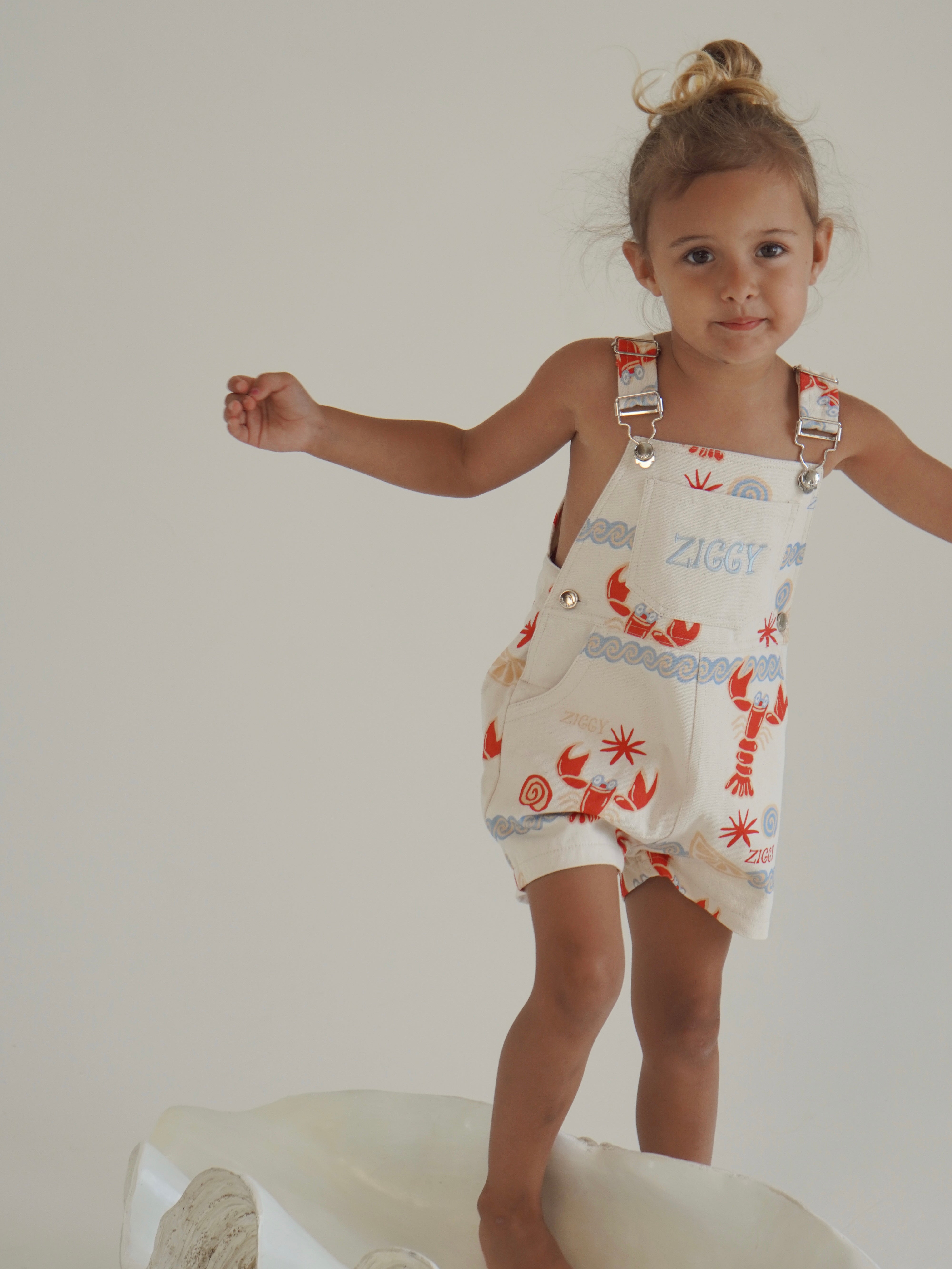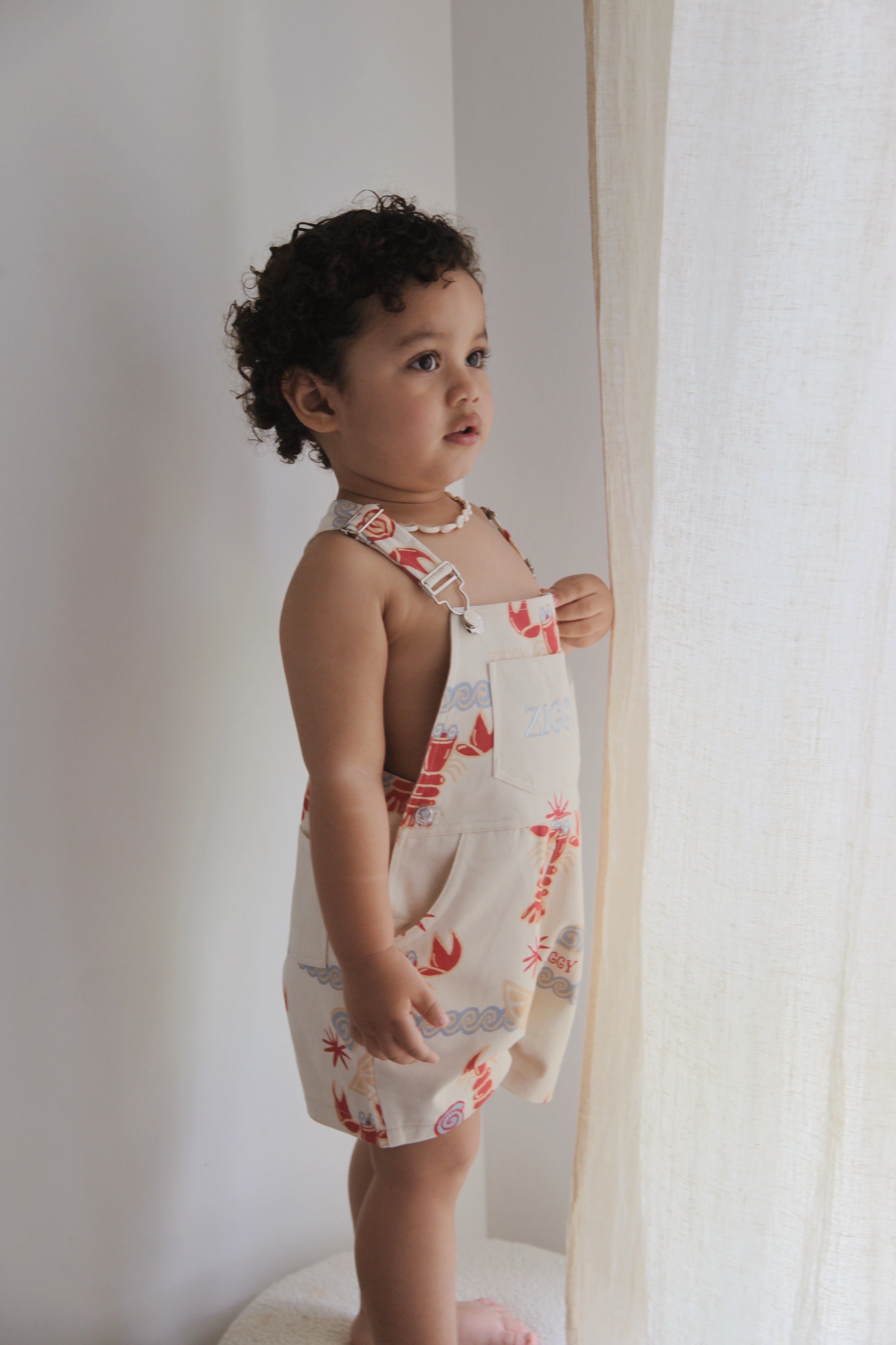 Shortalls featuring our printed Costa design and 5 functional pockets, adjustable shoulder straps and functional snaps at crotch (up to 2Y) for easy nappy changes.