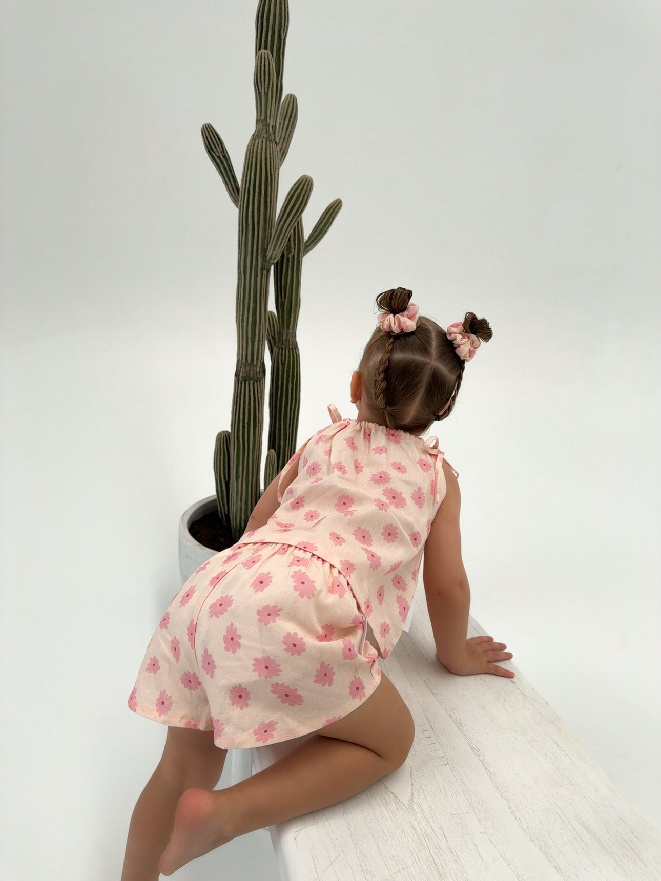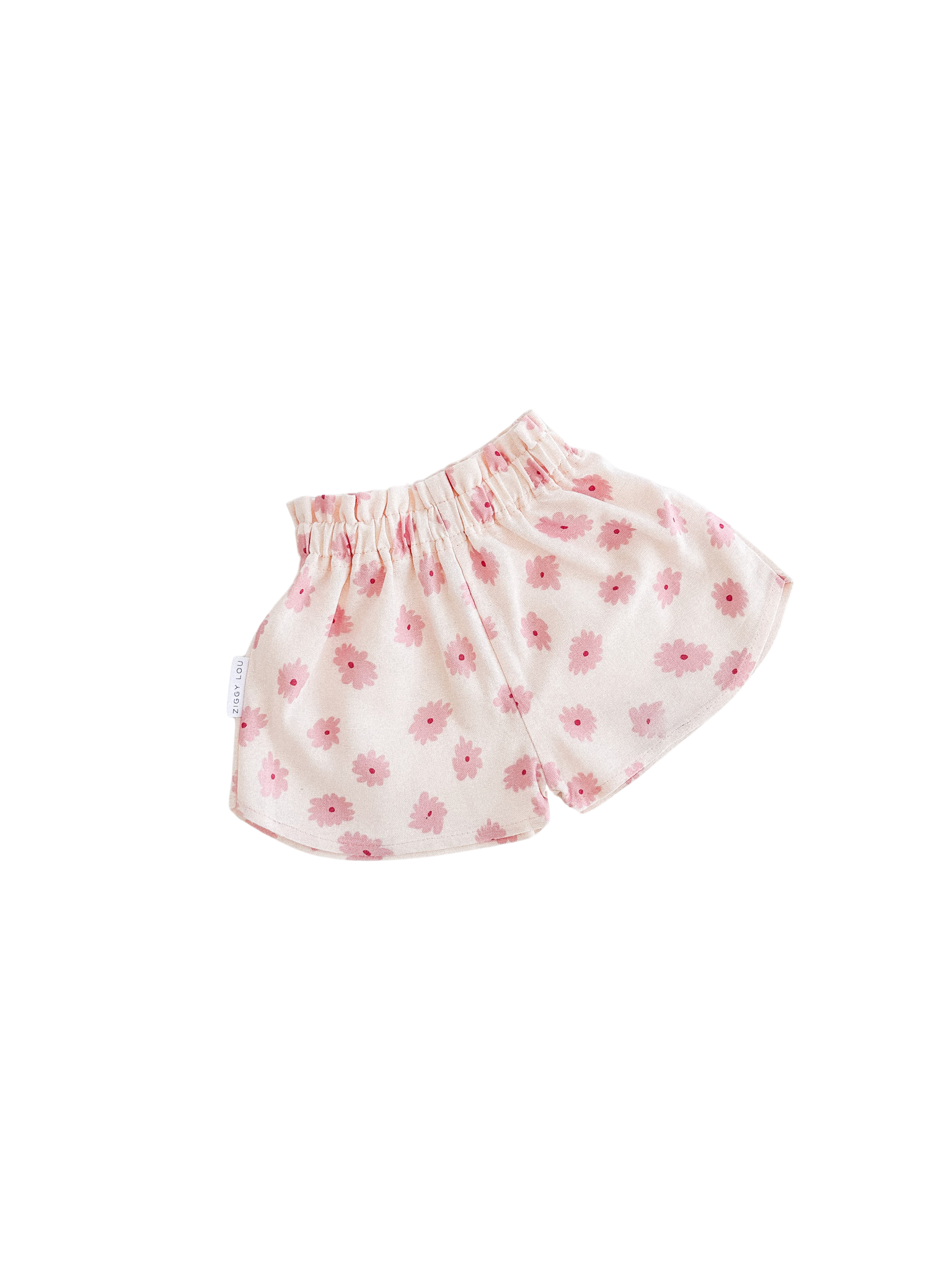 Linen blend shorts with an elastic waist featuring our Margot print.
