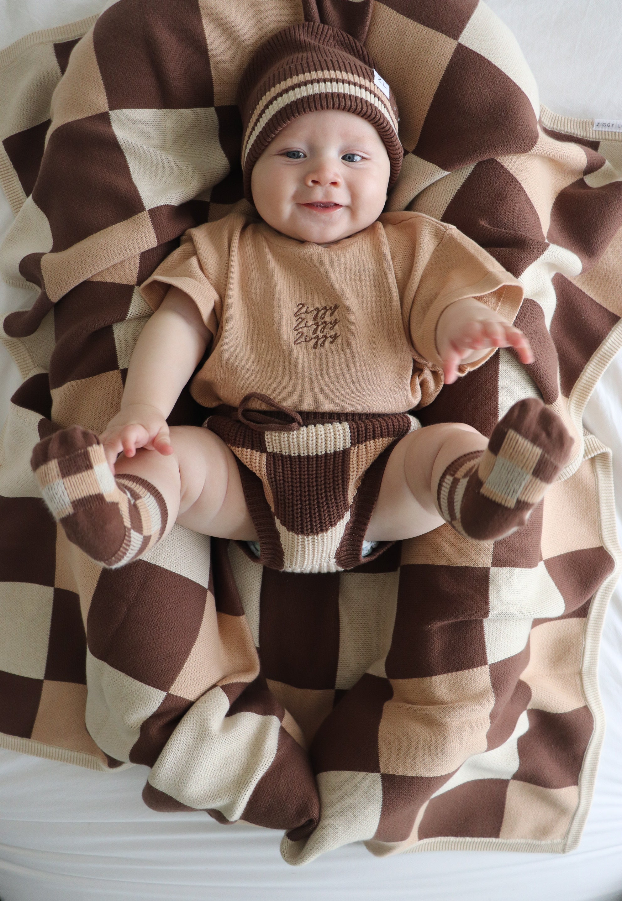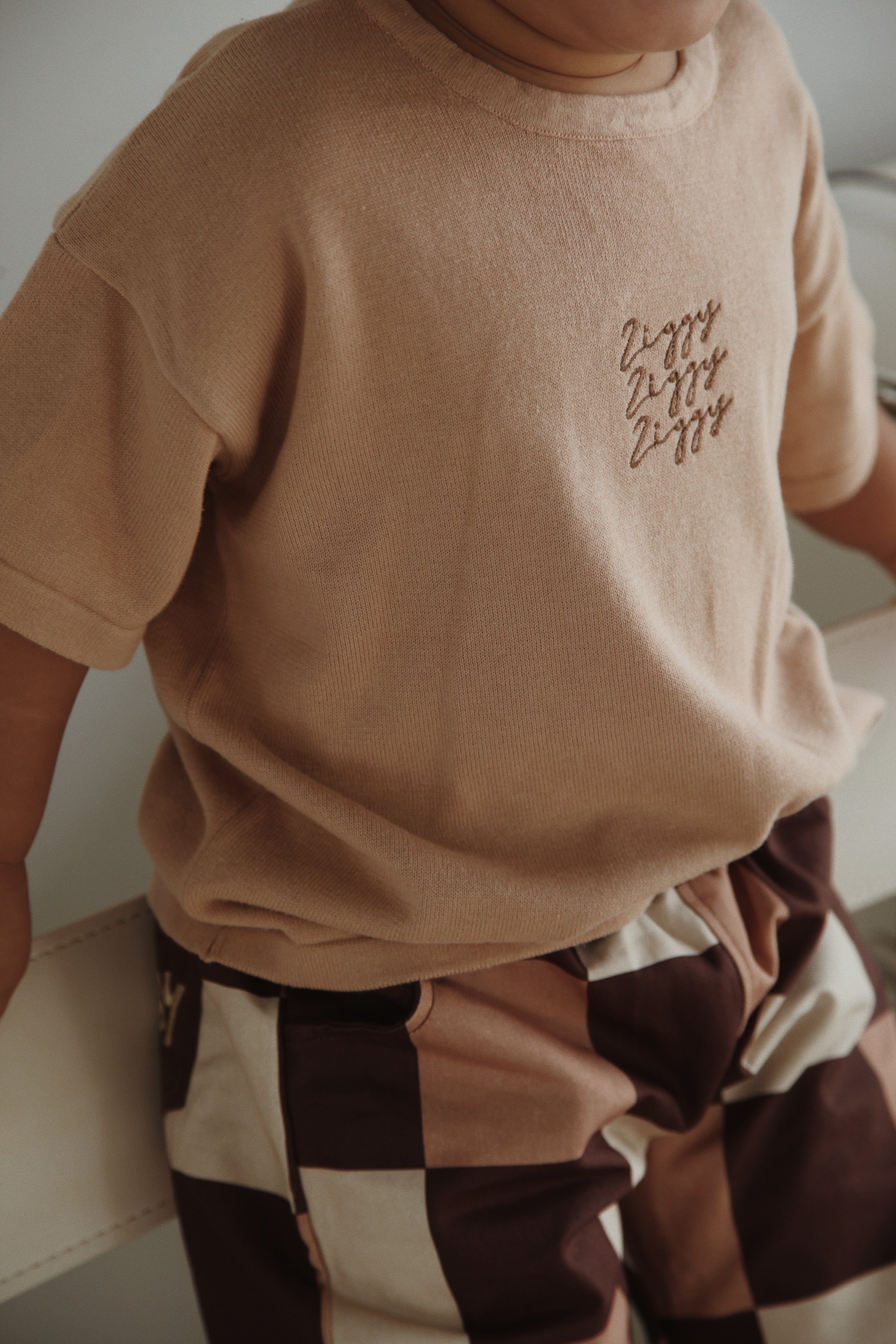 Knitted tee, made for everyday wear. Oversized fit, with our original Ziggy embroidered logo design. Match with items from our Checks, Theo + Java Collection.