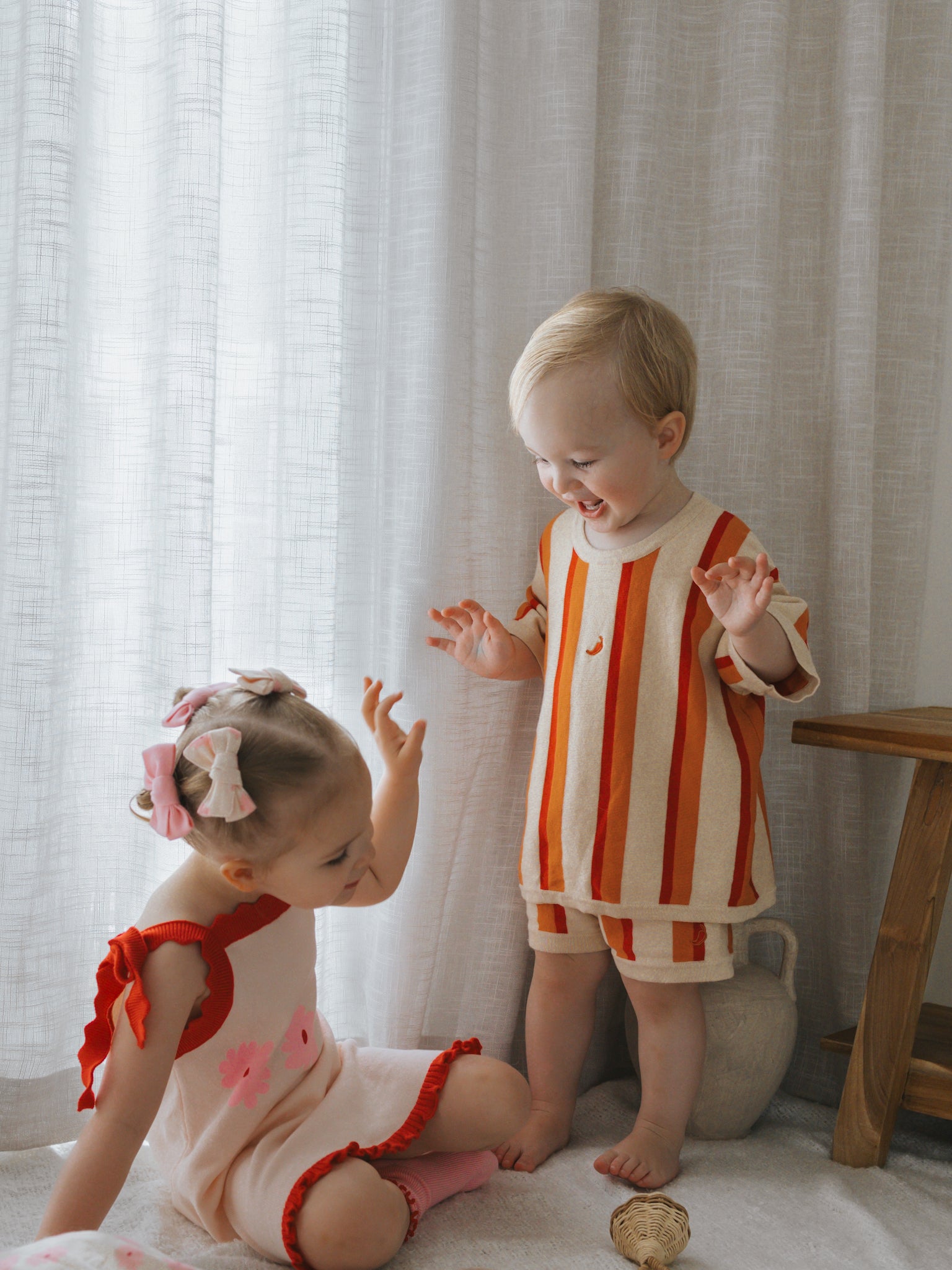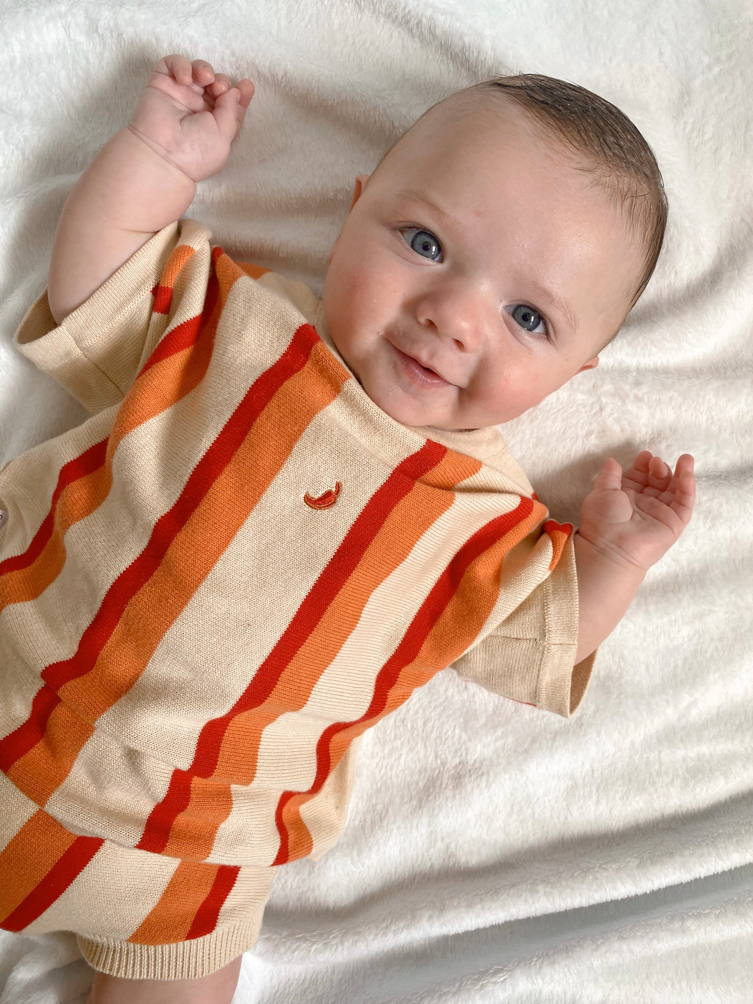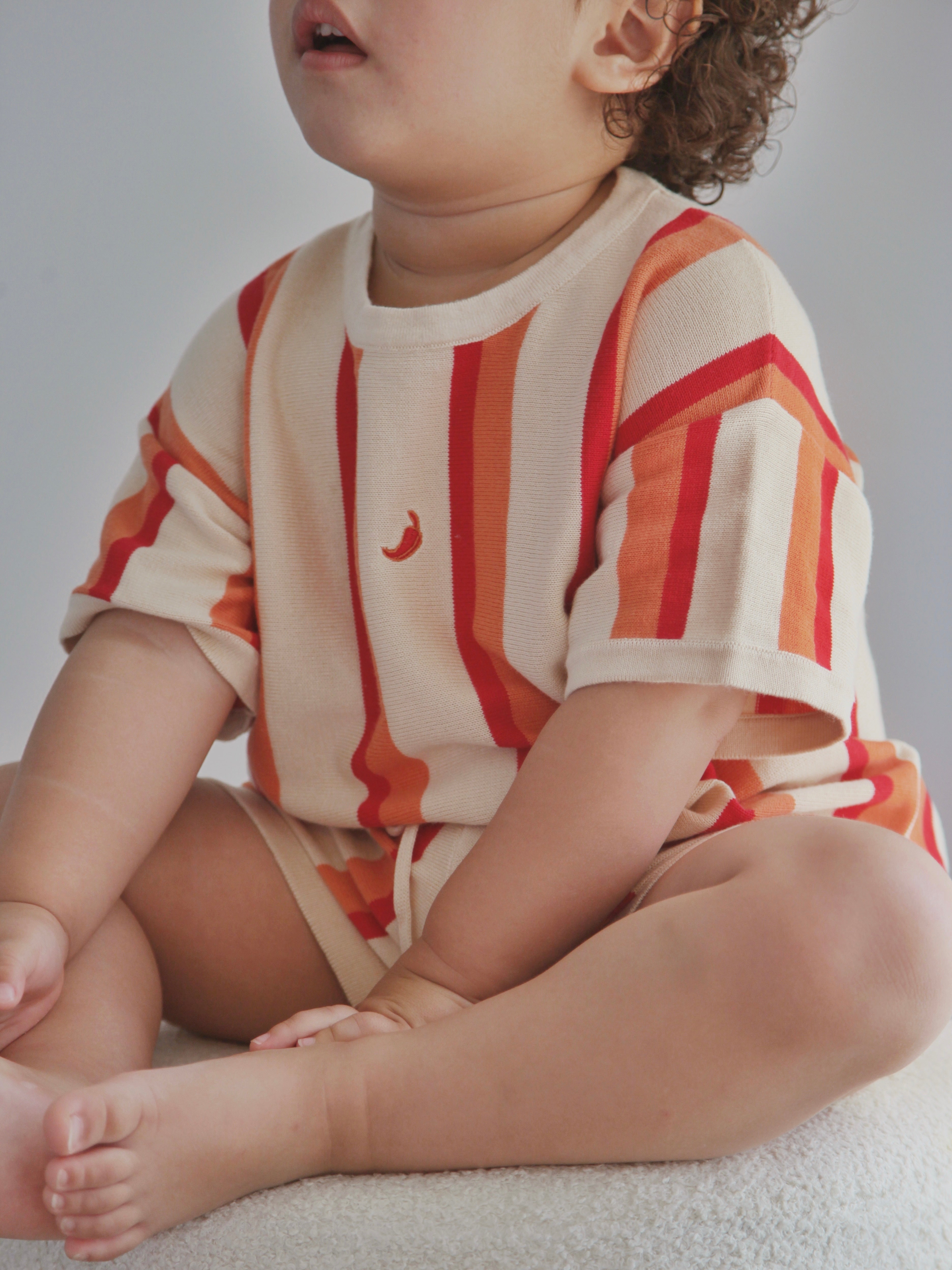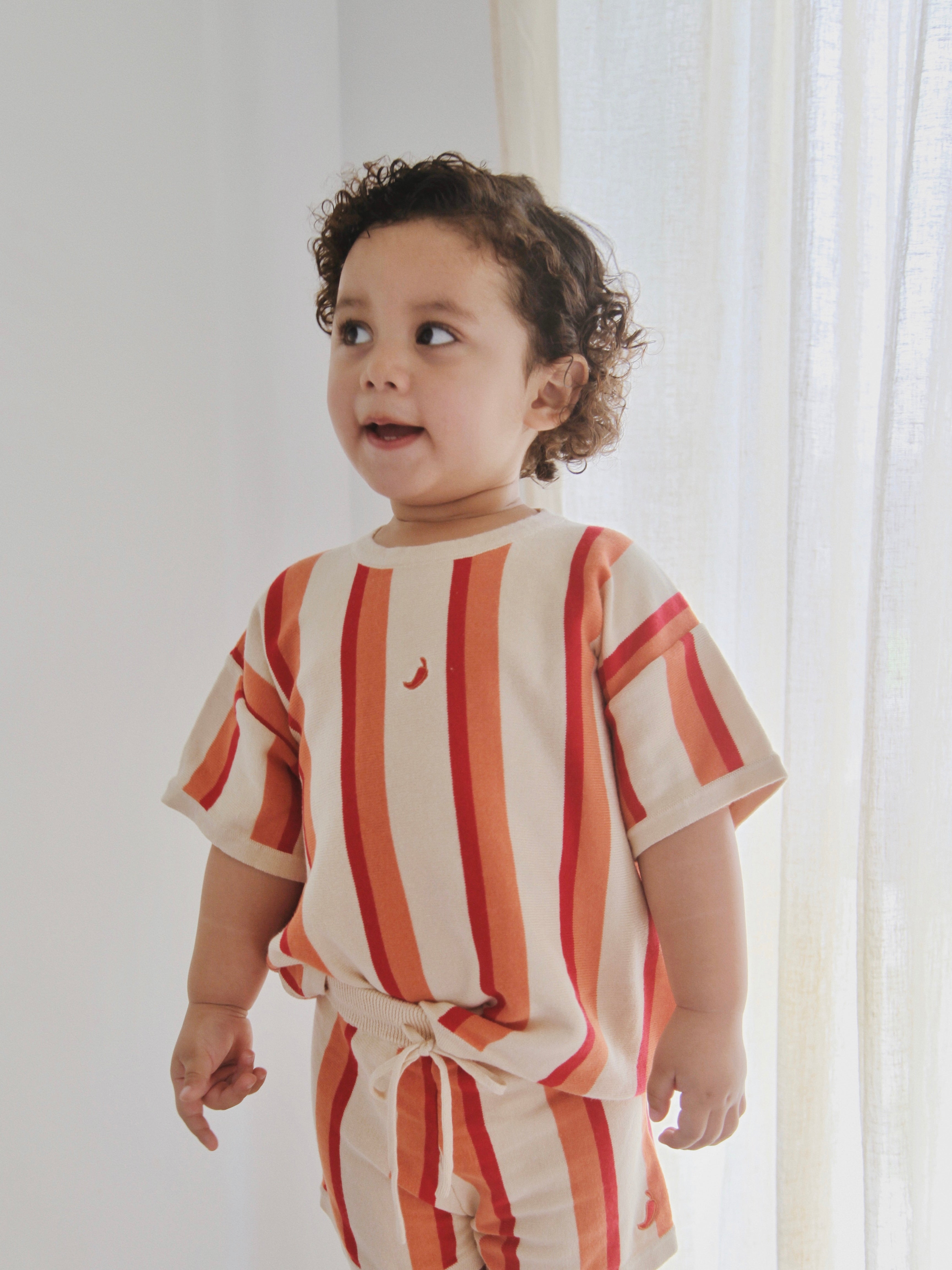 Thin knit tee featuring Salsa + Flame stripes. Mix and match with our Fiesta, Chilli + Costa Collections.