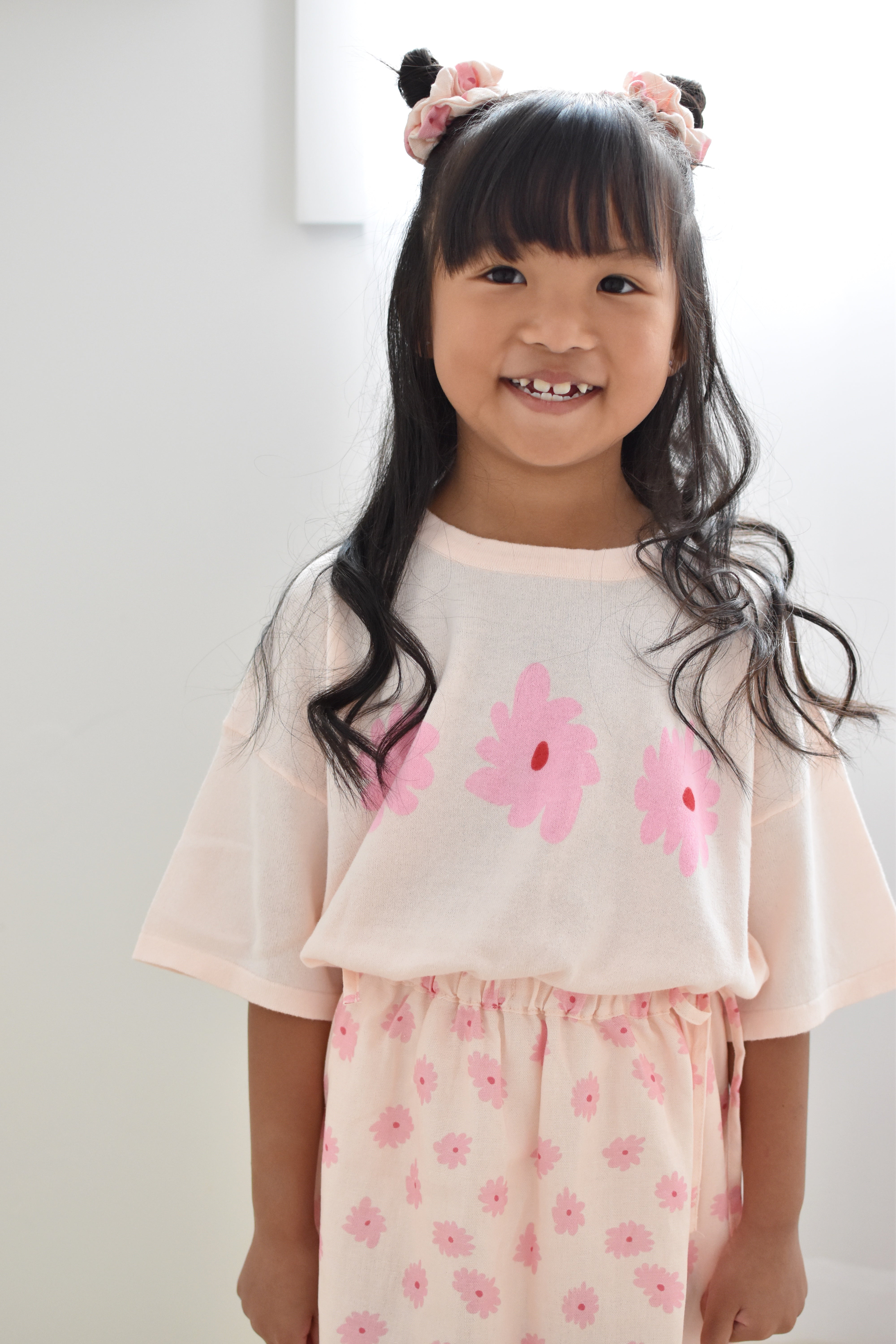 Knitted tee in our Primrose colour featuring our Margot printed design on the front. Mix and match with our Margot, Elodie, Rosa + Maeve Collections for the perfect outfit.