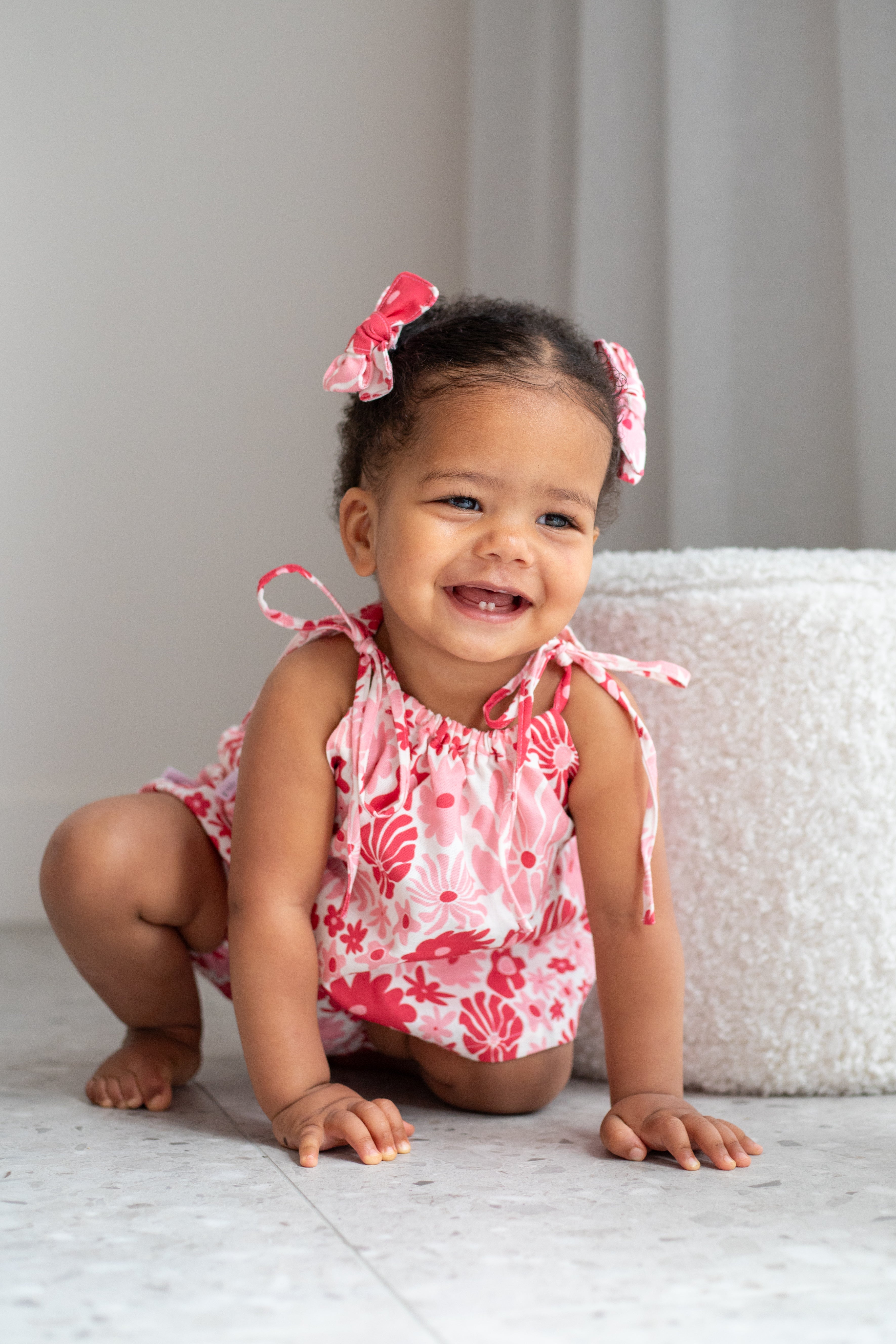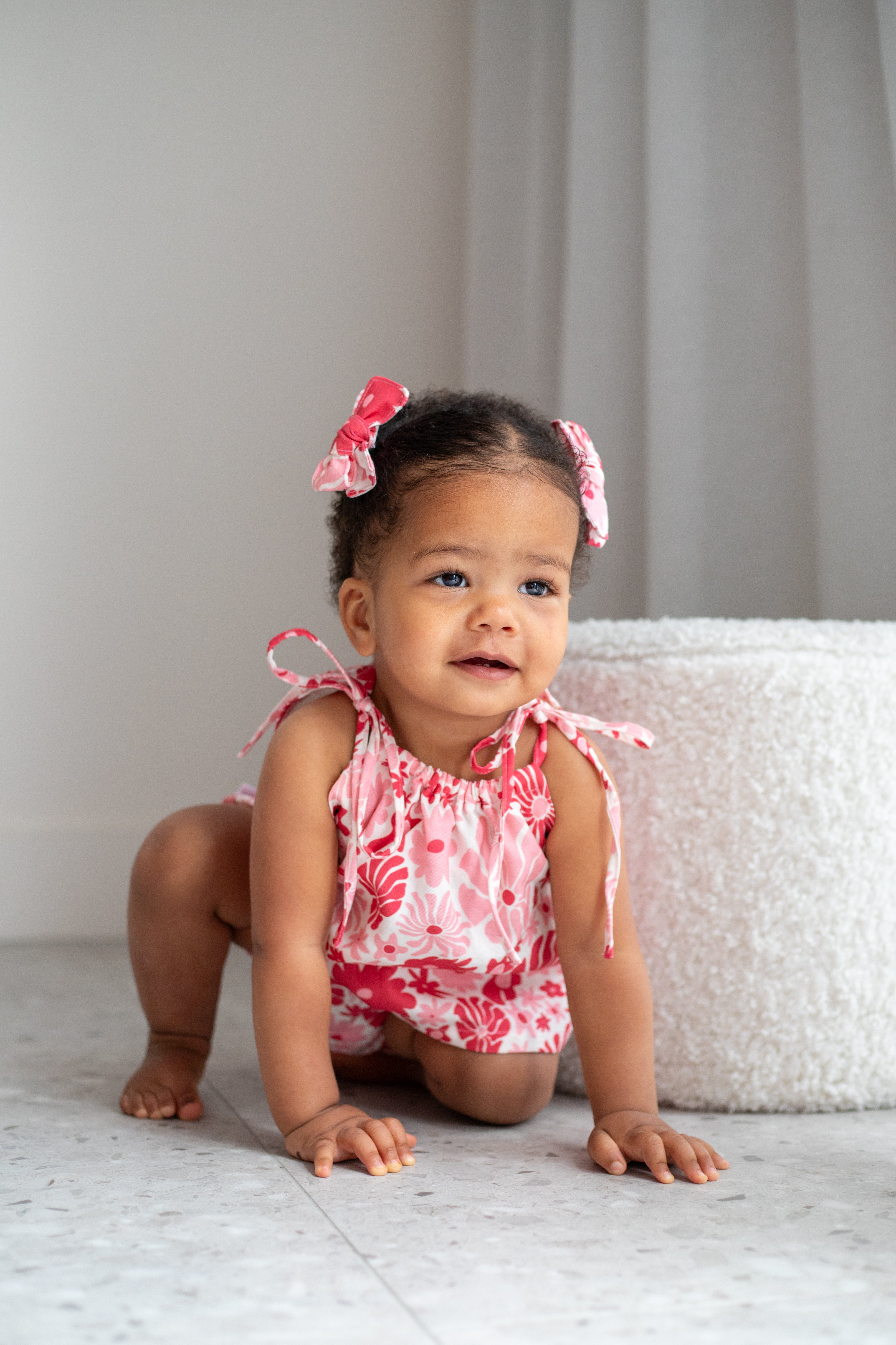 Linen blend singlet featuring our Rosa printed design. Functional ties at the shoulder for the perfect fit. Mix and match with items from our Rosa, Maeve + Elodie Collections.